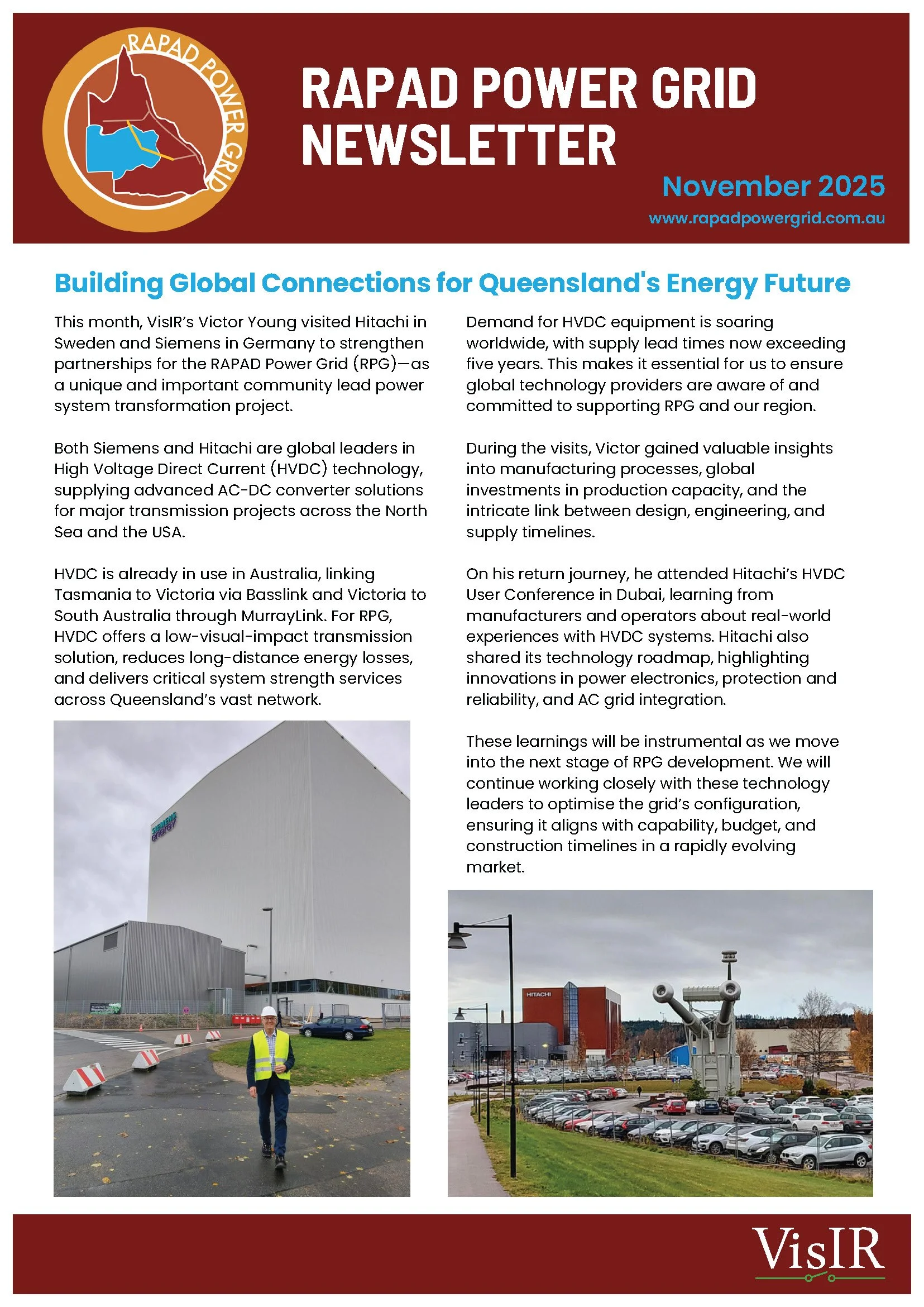 Newsletter - Nov 2025 NewsNewsletter 17 Nov Written By Aleisha Domrow Read the latest news from the VisIR RAPAD Power Grid project team. Aleisha Domrow